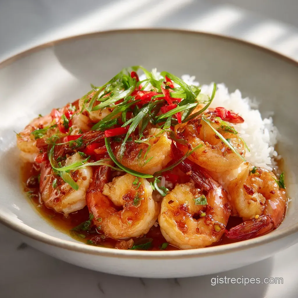 Aesthetics matter, especially with a dish this fast. To get that high end look, don't just dump the shrimp onto a plate. Arrange them in a circular pattern and pour the remaining glaze from the pan directly over the center. The way the light hits the glossy Asian garlic shrimp sauce is half the appeal.